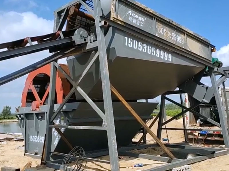 合格的細料排入一台輪式洗沙機内進行清洗,清洗後的成品料由成品料輸送機輸送至成品料區域。