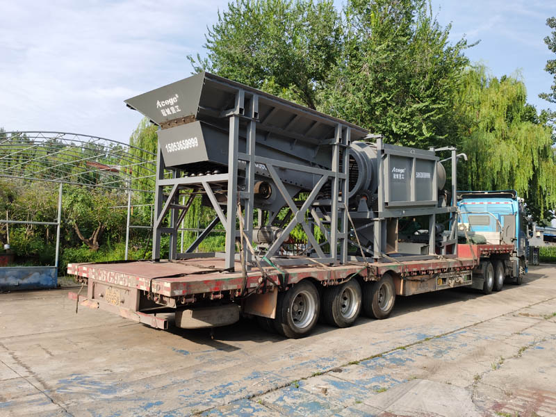 原料通過工程車輛送入振動料倉,首先篩選出較大的不合格廢料,減少滾筒篩磨損,增大工作效率,合格的物料經振動給料機均勻送入上料輸送機内,然後進入多鉸刀絞洗式滾筒篩内進行篩選分級爲:粗料與細料兩種規格,其中不合格的粗料直接通過廢料溜槽排出至廢料區域;